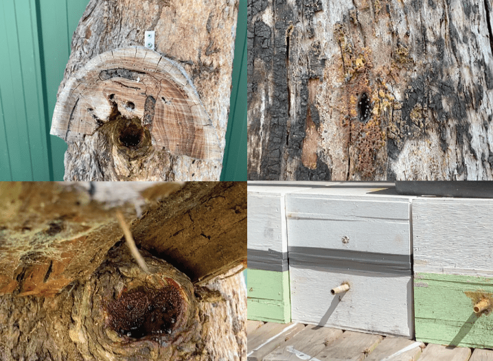 Jeff went on to research Australian Native Bees and found bees in trees around the Shoalhaven. When trees are felled or trees fall down there is a good chance to find a colony of native bee hive inside. Jeff can sometimes rescue these colonies and either keeps them in a portion of the tree or moves them to one of his specially made hives.